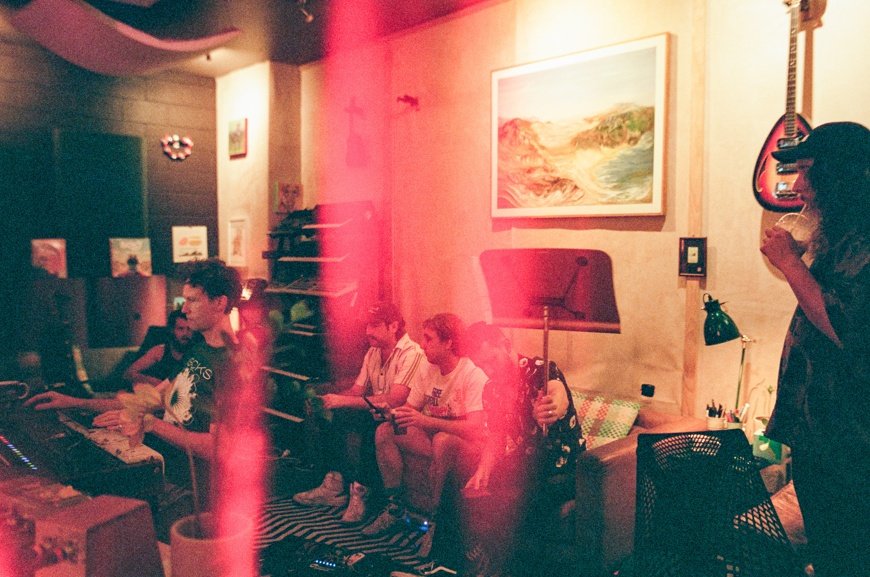 Pictured left to right: Swampy, Marly, Sam, Benny, Tyler, Daniel during a mixing session of Pollen at Alchemix Studios in West End. Photo taken by Linus Marsh